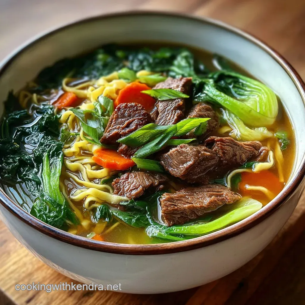 Presentation is half the fun with a bowl of Noodle Soup. I like to use wide, deep ceramic bowls that retain heat well. Start by nesting the noodles in the center, then arrange the beef on one side and the greens on the other. This creates a "landscape" that looks as good as it tastes.