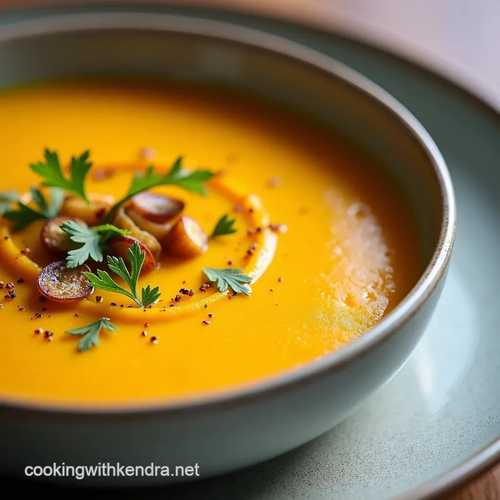 While the squash provides sweetness, balance is crucial. We introduce aromatic structure using classic mirepoix ingredients (onion, carrot, celery) sautéed gently in butter to soften them beautifully. Crucially, we integrate warming spices like nutmeg and cinnamon, which complement the squash perfectly.