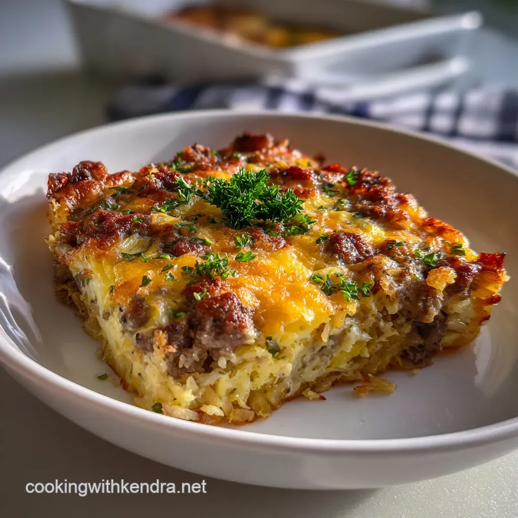 Don't discard the fat rendered from the 1 lb ground pork sausage. Transform: Use 1 tbsp of it to grease the 9x13 baking dish instead of butter. Science: The sausage fat has a higher smoke point and contains fat-soluble flavor compounds that season the bottom layer of hashbrowns as they bake.